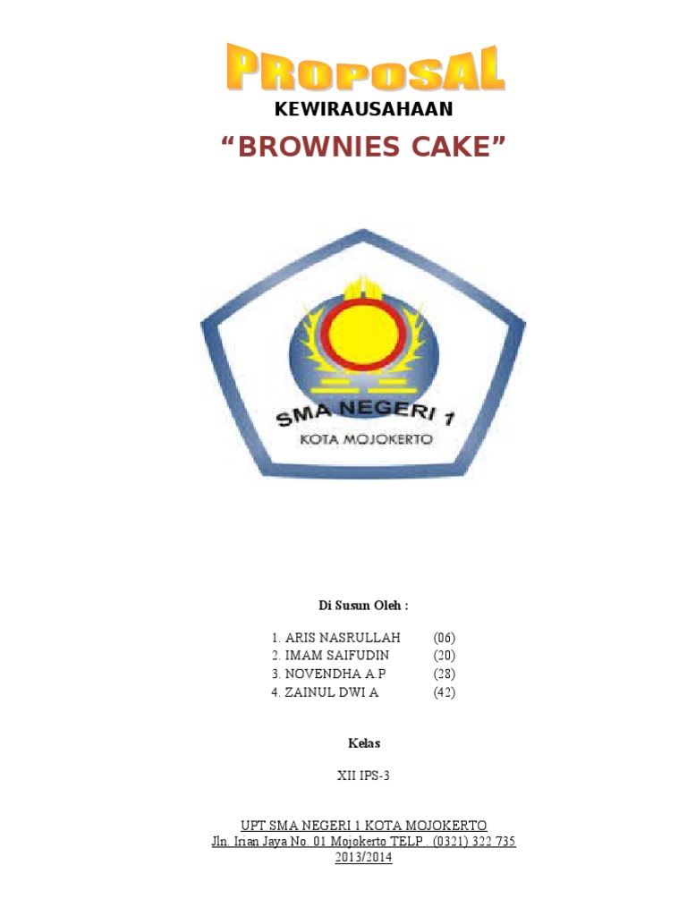 Ahmad jaelani muhammad septian syamsul muhammad ridwan santigi anjar kelana kelas : Ringkasan eksekutifroti goreng crafd dinamai dari singkatan awal nama pemilik usaha ini yang terdiri dari citra, riska, aris, farid dan dainty yang disingkat menjadi crafd. Disusun untuk memenuhi tugas mata kuliah kewirausahaan semester 6. In business, employees are regularly expected to put forth an innovative and detailed proposal template that can help improve the company or the organization as a whole. Why does one need a proposal? Looking for actual business plans for inspiration? Nature of business history a sweet chocolate dessert that has a history of different stories of origin but all pointing to being created around the mid 1800's. Again, not everything might need to be shown to everyone who reads your plan, but here is a full list of items you might want to prepare for. Rencana tertulis untuk tujuan berikut ini beberapa contoh bisnis plan sederhana untuk mahasiswa bisa anda lihat di bawah ini keunggulan brownies berbentuk mini adalah untuk memenuhi kebutuhan pasar dengan camilan. Berikut ini business plan dalam bidang makanan Lihat contoh business plan terfavorit, lengap dengan pdf ini. Documents similar to contoh proposal brownies. Contoh business plan brownies business plan powerpoint 1 typically, a brownie is approximately 1 inch in height beberapa contoh business plan berikut seperti makanan startup mahasiswa dan jasa mungkin bisa menjadi acuan anda.